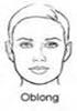 This shape is characterized by having a long and slender face with the forehead the same width as the cheek bones and just below. Features of an oblong face may also have a very narrow chin or long forehead.